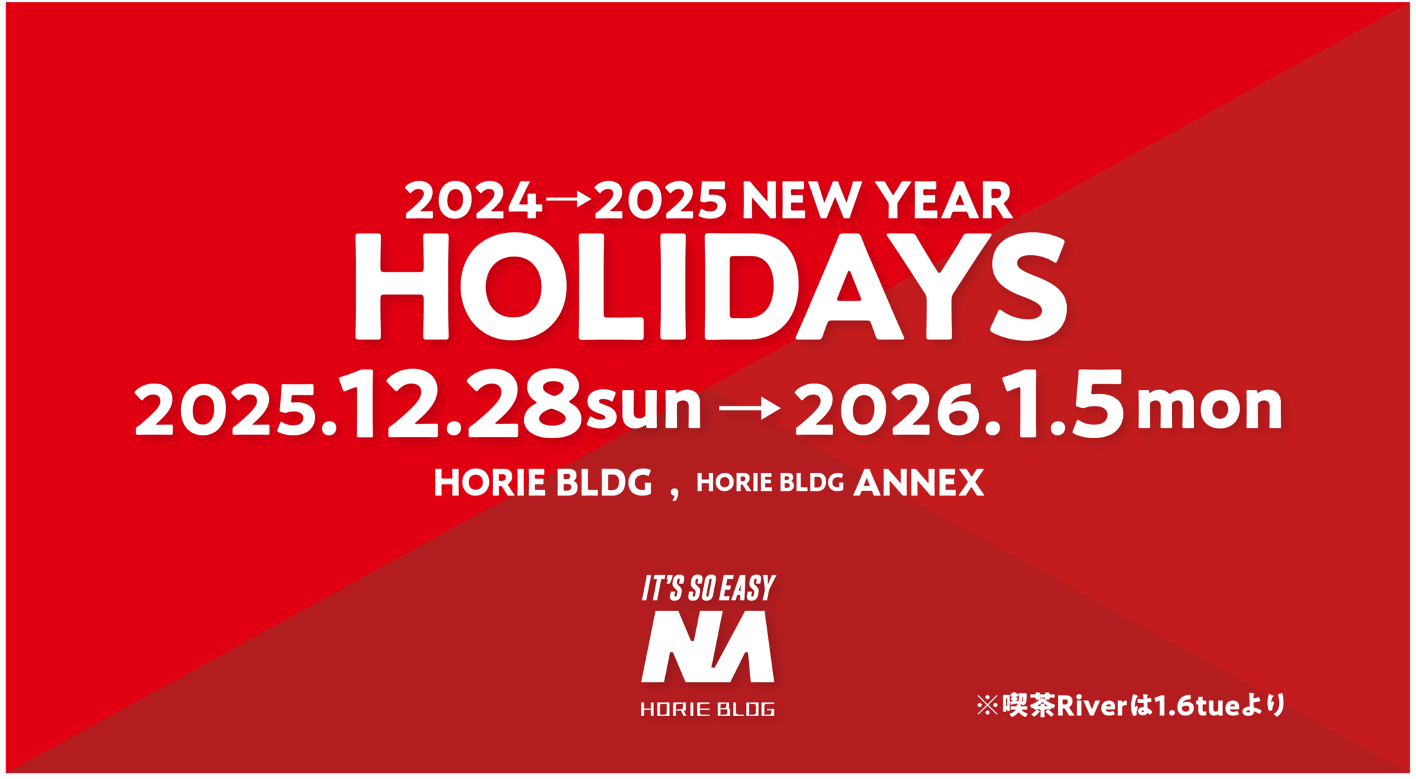 ホリエビル本館およびANNEX館、年末年始の休館日についてお知らせです!
